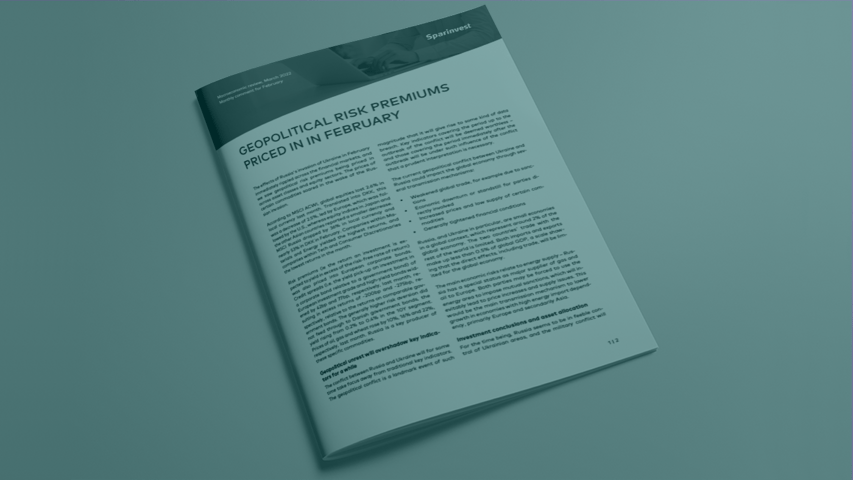 According to MSCI ACWI, global equities lost 2.6% in local currency last month. Translated into DKK, this was a decrease of 2.5%, led by Europe, which was followed by the U.S., whereas equity indices in Japan and the other Asian countries reported a smaller decrease. MSCI Russia dropped by 36% in local currency and nearly 53% in DKK in February. Companies within Materials and Energy yielded the highest returns, and companies within Tech and Consumer Discretionaries the lowest returns in the month.